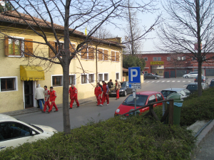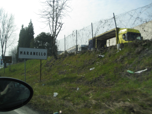 More tunnelsSports car. It was so fast you could hardly see it.The Tuscan countrysideIn or around ModenaTraffic circle. Are we in wine country yet?Maranello, home of the FerrariBy the Ferrari factoryDisplay in the window of a Ferrari giftshopInside the Ferrari museum: "To crash in event of fire"Not a Ferrari. (This is for you, Dad)They wouldn't let us onto this racetrack.If a car flies off the track, it'll hit these.Homes in MaranelloThe industrial northWe passed through Bologna. It's a colorful city of yellow, red, and orange. Unfortunately my camera's battery ran out after this one shot.We stayed overnight in Padua, and I had the battery recharged just in time to get a few bad shots as we sped away in the morning.The sun through a lot of fog. I thought it was the moon at first.And the closer we got to Venice, the foggier it became.