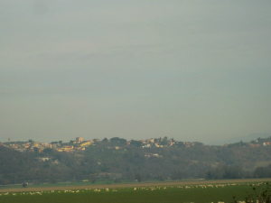 Our plane coming up to the terminal at Ben-Gurion Airport. I was a little late with the camera, and missed the front. Darn.From Fiumicino airport, we took a train to Rome's Termini station, in the city center.Bad night shot of a modern hotel in Rome with snazzy black fire escapesOlive selection at a Roman supermarket. Tasty.Endless arches at the Termini station. We rented a car here in the morning and set off.Scenery along the highwaySheepThe highways are tolled, and this is where you pick up a ticket after getting on.One of maybe 800 beautiful old villages we passedCloseupRed-leafed treesExiting one of maaaaany tunnelsSheep on an overpassNearing Florence