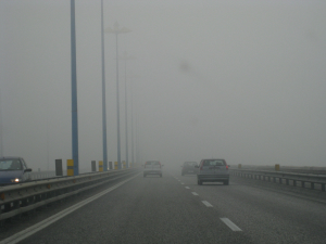 More tunnelsSports car. It was so fast you could hardly see it.The Tuscan countrysideIn or around ModenaTraffic circle. Are we in wine country yet?Maranello, home of the FerrariBy the Ferrari factoryDisplay in the window of a Ferrari giftshopInside the Ferrari museum: "To crash in event of fire"Not a Ferrari. (This is for you, Dad)They wouldn't let us onto this racetrack.If a car flies off the track, it'll hit these.Homes in MaranelloThe industrial northWe passed through Bologna. It's a colorful city of yellow, red, and orange. Unfortunately my camera's battery ran out after this one shot.We stayed overnight in Padua, and I had the battery recharged just in time to get a few bad shots as we sped away in the morning.The sun through a lot of fog. I thought it was the moon at first.And the closer we got to Venice, the foggier it became.