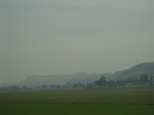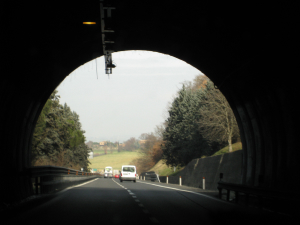 Our plane coming up to the terminal at Ben-Gurion Airport. I was a little late with the camera, and missed the front. Darn.From Fiumicino airport, we took a train to Rome's Termini station, in the city center.Bad night shot of a modern hotel in Rome with snazzy black fire escapesOlive selection at a Roman supermarket. Tasty.Endless arches at the Termini station. We rented a car here in the morning and set off.Scenery along the highwaySheepThe highways are tolled, and this is where you pick up a ticket after getting on.One of maybe 800 beautiful old villages we passedCloseupRed-leafed treesExiting one of maaaaany tunnelsSheep on an overpassNearing Florence